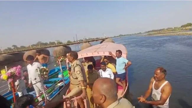 Mathura News: मथुरा के वृंदावन क्षेत्र में शुक्रवार को उस समय हड़कंप मच गया जब यमुना नदी में श्रद्धालुओं से भरा एक स्टीमर अचानक डूब गया। बताया जा रहा है कि स्टीमर में पंजाब से आए श्रद्धालु सवार थे जो यमुना में नौका विहार कर रहे थे। हादसे की खबर मिलते ही आसपास मौजूद लोगों में अफरा-तफरी मच गई और बड़ी संख्या में लोग नदी किनारे की ओर दौड़ पड़े।प्राप्त जानकारी के अनुसार स्टीमर में करीब 20 से 25 लोग सवार बताए जा रहे हैं। अचानक स्टीमर का संतुलन बिगड़ने के बाद वह कुछ ही क्षणों में पानी में समा गया। नदी में मौजूद अन्य नाव चालकों और स्थानीय लोगों ने तुरंत बचाव कार्य शुरू कर दिया। कई लोगों को स्थानीय नावों की मदद से बाहर निकालने की कोशिश की गई।